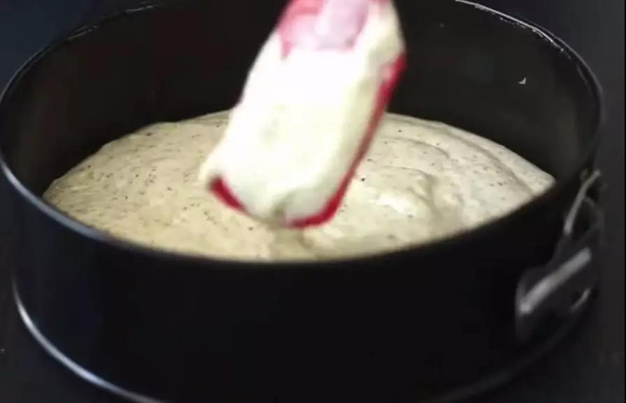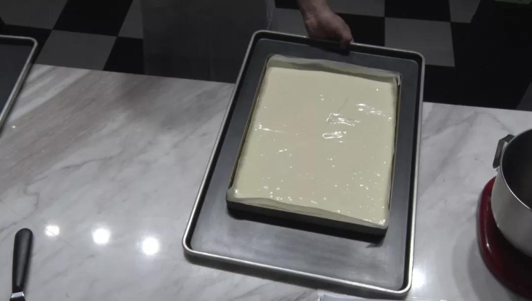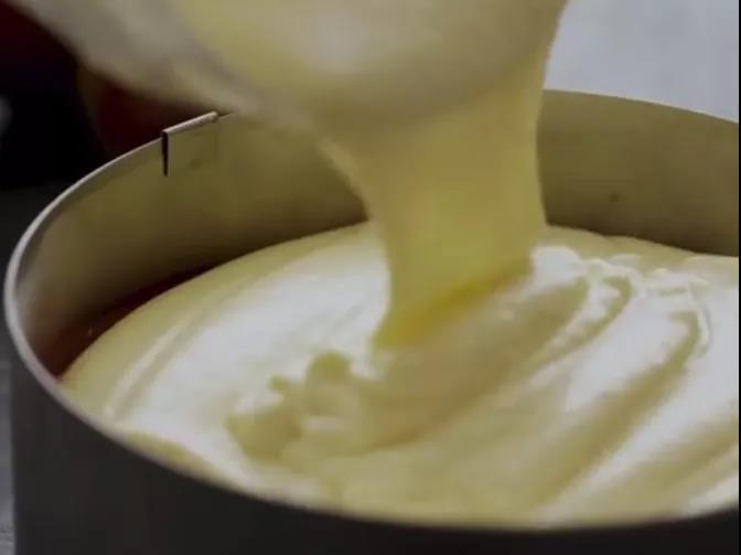 前面教你撫平蛋糕面糊,接下來就要輕敲蛋糕框,使面糊內(nèi)的周游不定的起泡除掉。這一步對于厚重的面糊來講尤為關(guān)鍵,將面糊中的空氣除掉就能確保你的蛋糕不會塌陷。