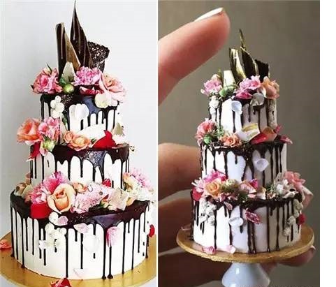 她的微雕蛋糕塑像以真實(shí)的豪華蛋糕為模板,軟陶為原料,精確還原每個(gè)細(xì)節(jié),甚至還散發(fā)著蛋糕的香味,達(dá)到了一種美味可食的藝術(shù)效果。更令人驚嘆不已的是,這些微雕蛋糕竟然小到可以放在掌心賞玩。