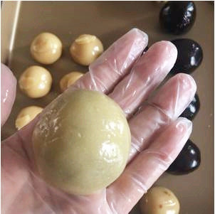 步驟四:餅皮和餡料分別稱(chēng)份量揉圓