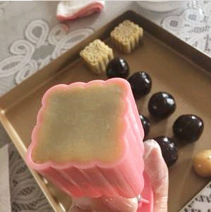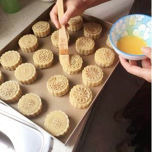 步驟九:放入月餅?zāi)>?,壓緊