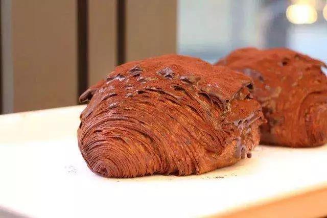 牛角包的層層酥皮上澆了厚厚的巧克力層,